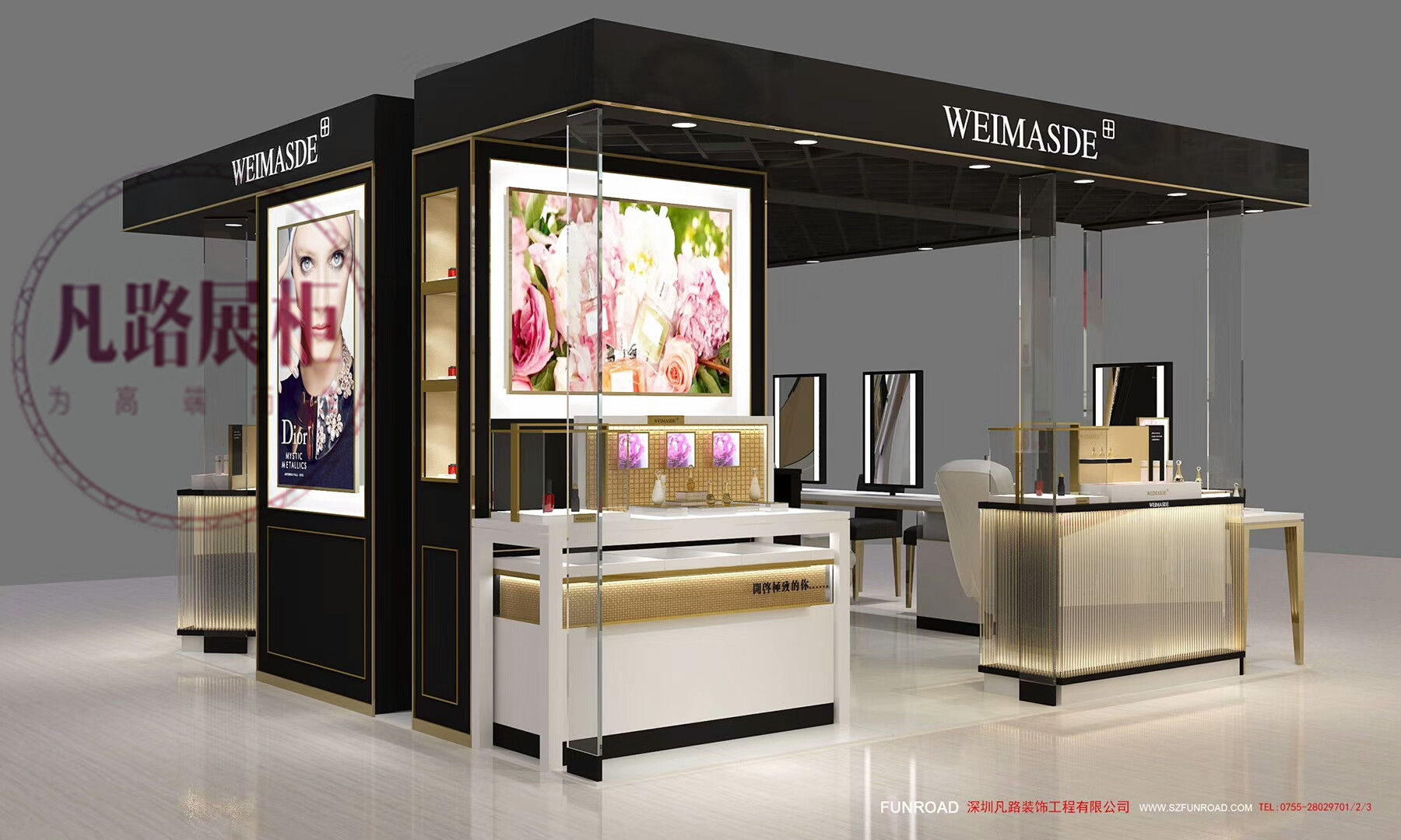 深圳化妝品展柜定制廠家凡路裝飾專業專注中高端化妝品展柜,化妝品展示柜,化妝品柜臺設計制作。為企業提供化妝品展柜設計制作方案,訂做/定做化妝品展柜服務,找化妝品展柜廠家、咨詢化妝品柜臺價格,找化妝品店展柜圖片就到凡路化妝品展柜公司官網。