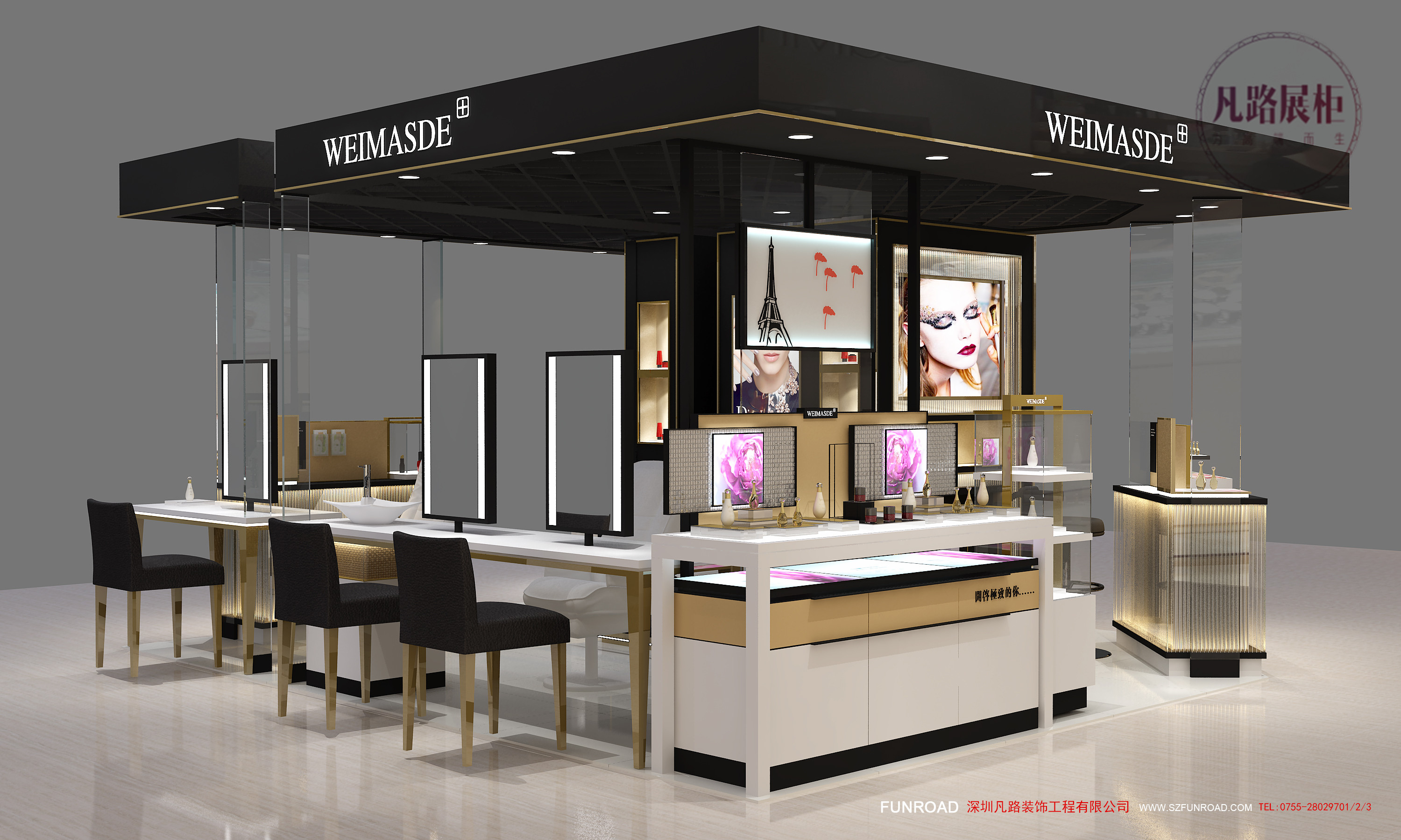 深圳凡路裝飾展柜免費設(shè)計咨詢服務(wù),達成委托設(shè)計意向書,二支付設(shè)計制圖費用,三由深圳凡路展柜:設(shè)計部提供設(shè)計方案—客戶圖紙確認一勾通確認展柜報價單一下單施工生產(chǎn)。