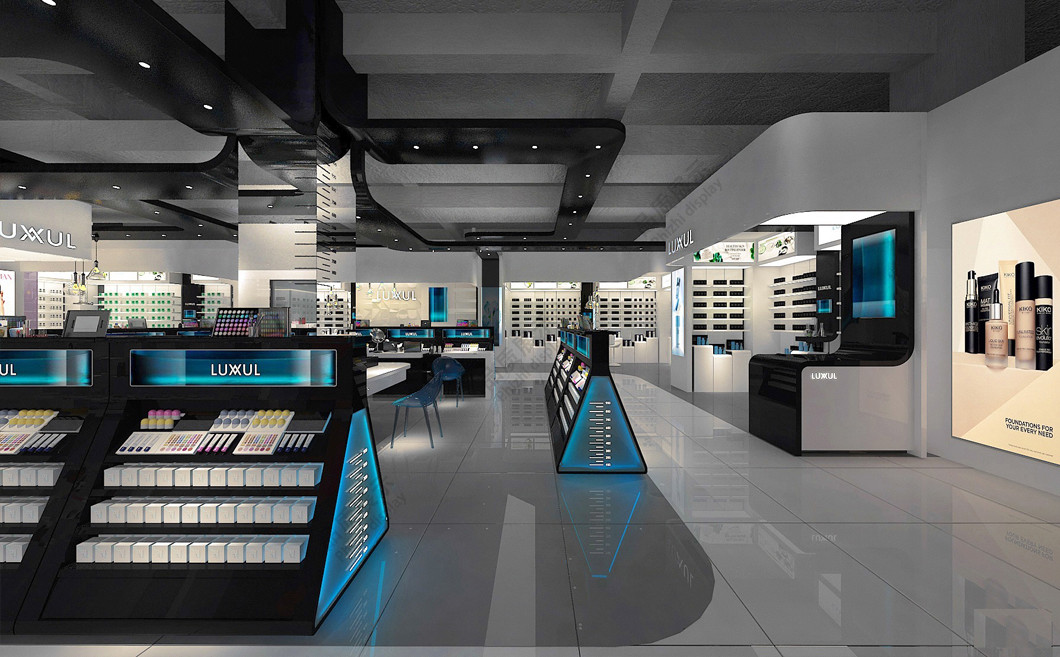 香港免稅化妝品店,化妝品展示柜臺現(xiàn)場效果圖